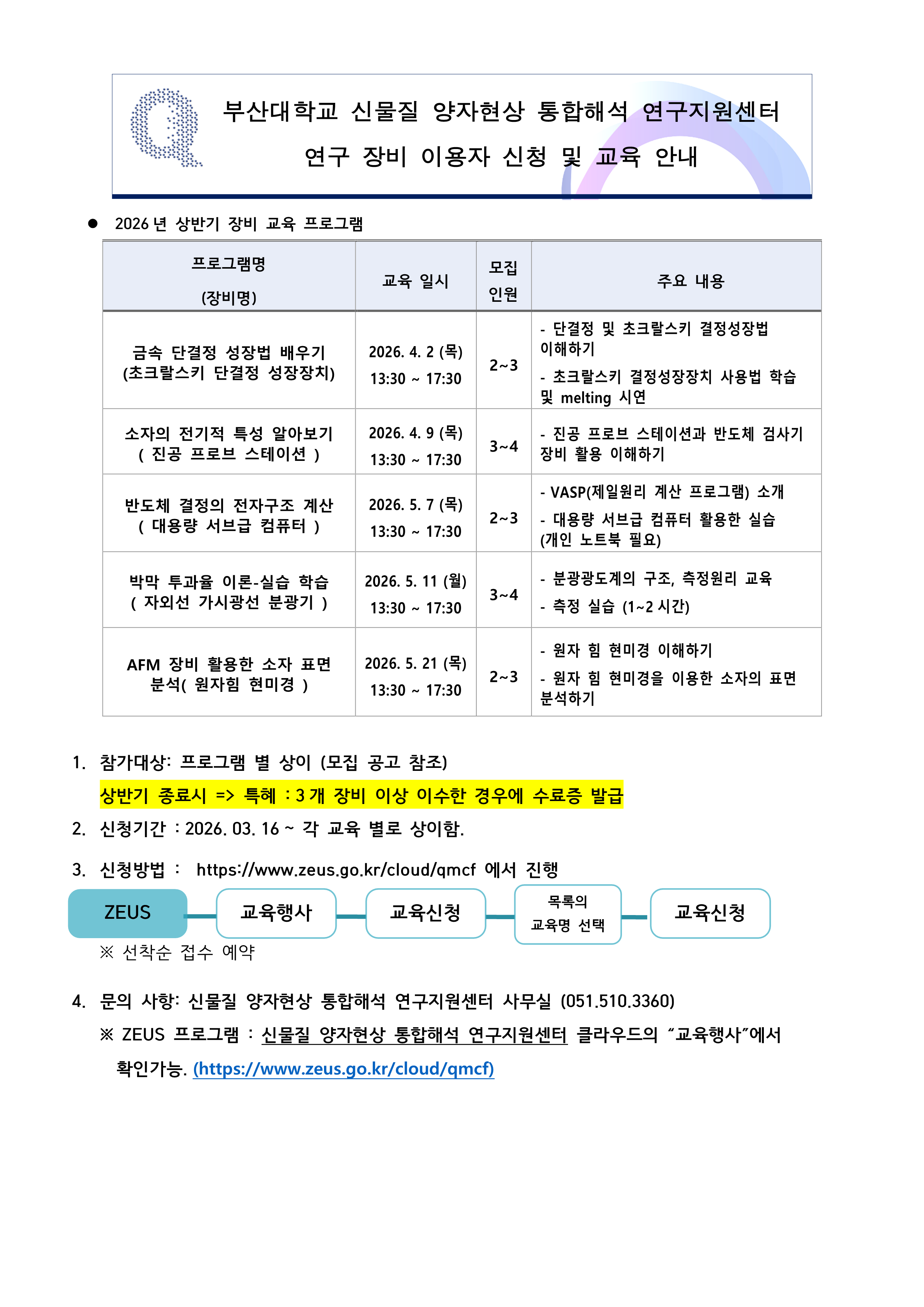 2026년도 상반기 QMCF 연구 장비 이용자 신청 및 교육 안내드립니다.